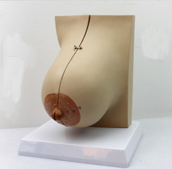 該模型由兩個部件組成,可活動打開,顯示哺乳期女性乳房剖面結(jié)構(gòu),共有多個部位指示標志。