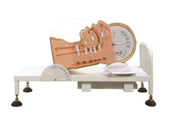 ■ 配有可調(diào)節(jié)的模擬病床,病床以及頭頸部均有角度指示針,可觀察頭頸角度的變化與病床的角度關(guān)系。