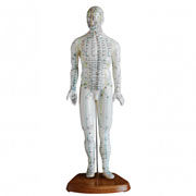 用亮色PVC制成,安放于底座上。標(biāo)明了經(jīng)絡(luò)線(xiàn)上的361個(gè)針灸穴位和48個(gè)經(jīng)外穴位,由著名的針灸專(zhuān)家和中科院院士對(duì)穴位進(jìn)行定位和核準(zhǔn)。模型左邊用英文顯示(如HN3,ST17),右邊用中文顯示。附中英文使用手冊(cè)。用軟PVC制成。