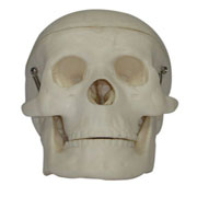 本模型詳細(xì)展示了頭骨里不同骨頭的主要結(jié)構(gòu)。頭蓋骨可取下,下巴用彈簧系住,可張開(kāi)觀察口腔里骨頭的結(jié)構(gòu)。尺寸:10x8x10CM。