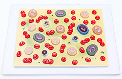 此寬模型放大2000倍,直觀地顯示人體血液細胞組成,包括紅細胞,各種白細胞等。方便用于教學展示使用。